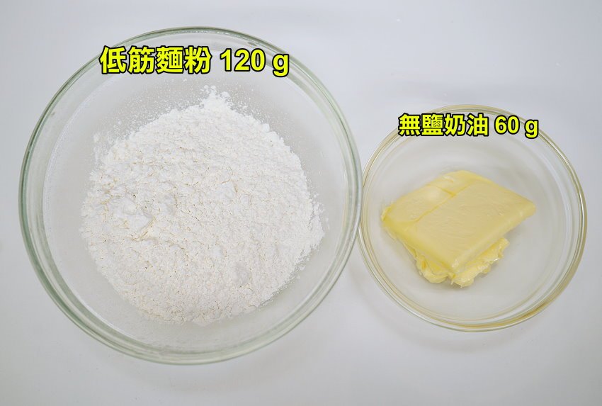 ▼接著來做油酥的部份~~材料也很簡單,只需要低筋麵粉、無鹽奶油兩種!