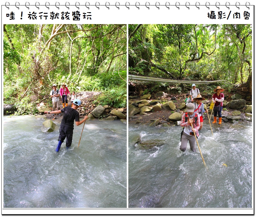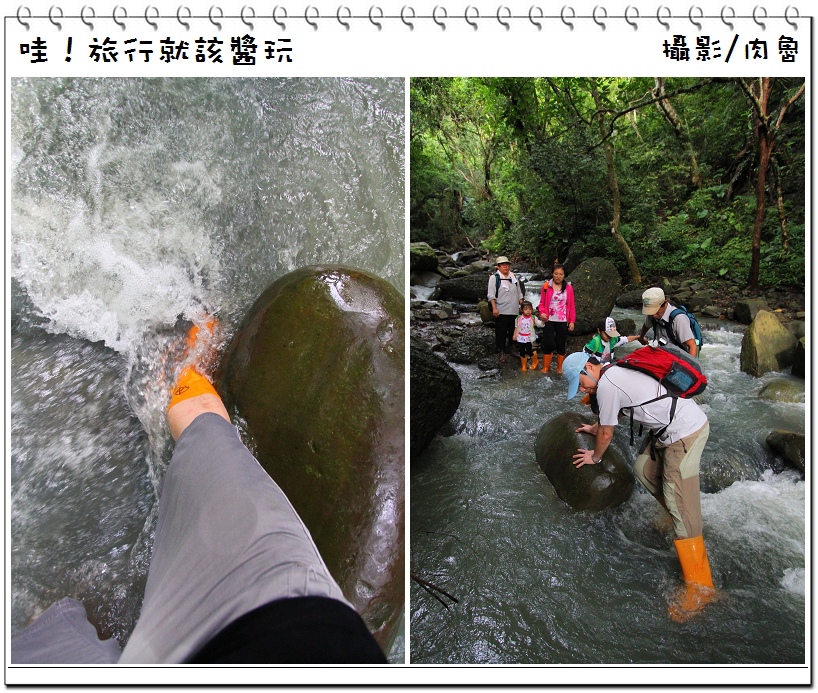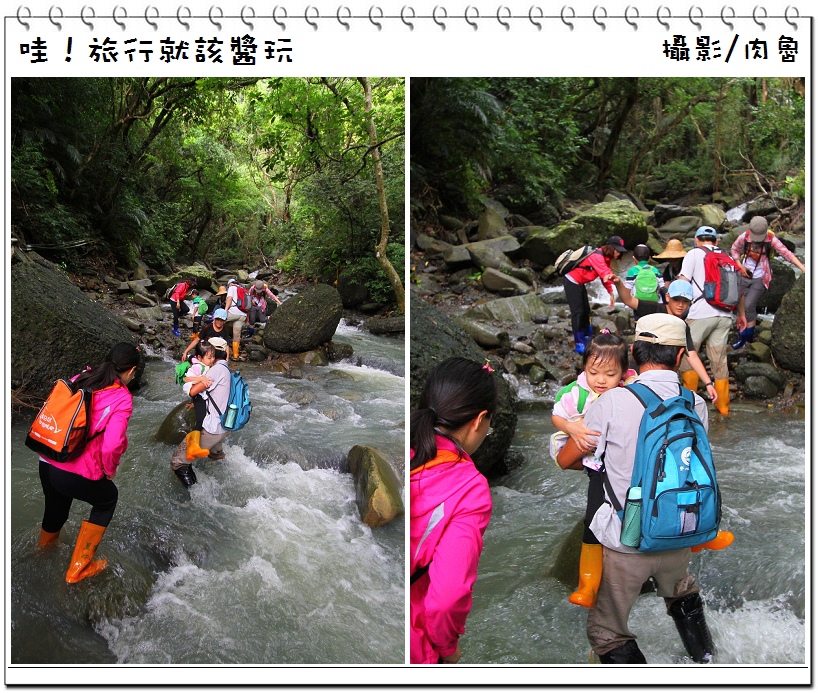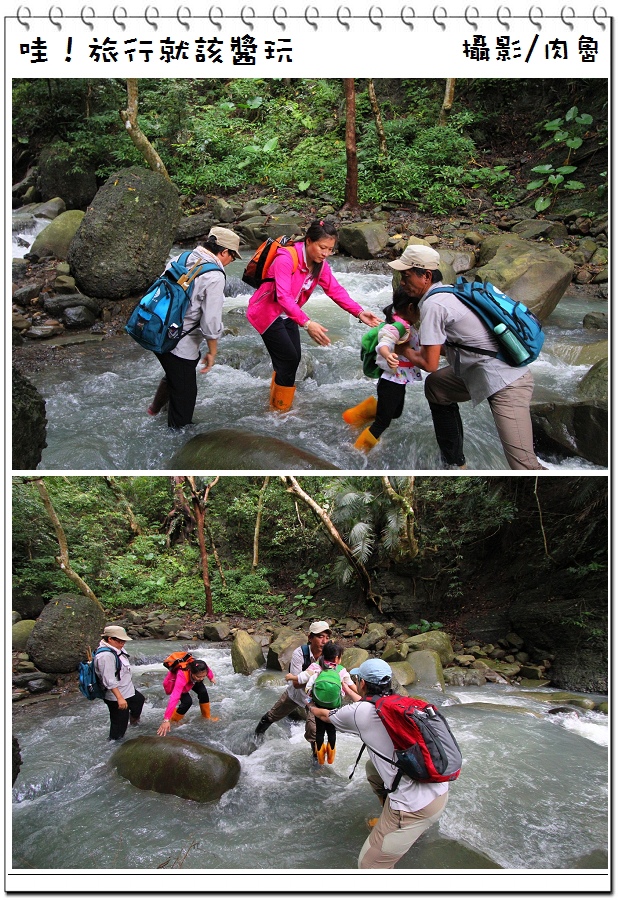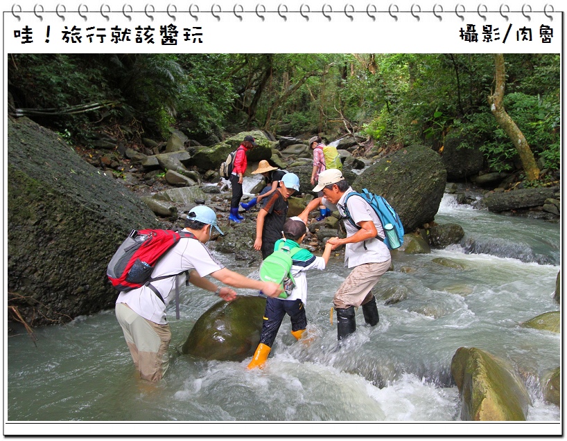 ▲再次上演幫小朋友渡溪趣味場景,欖仁溪行程裡會有一前一後的解說老師喔,解說老師跟我講:這裡有一條路要走2個多小時,就可走到台灣東南處的觀音鼻,那邊的海真正是沒人破壞美到極點,希望有朝一日也能親自造訪神秘的台灣東南海岸!
