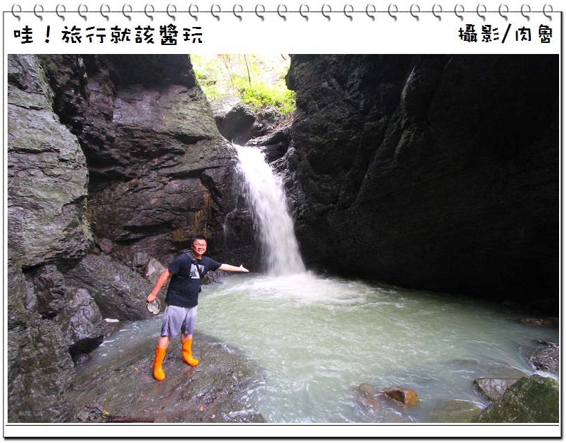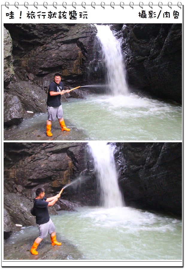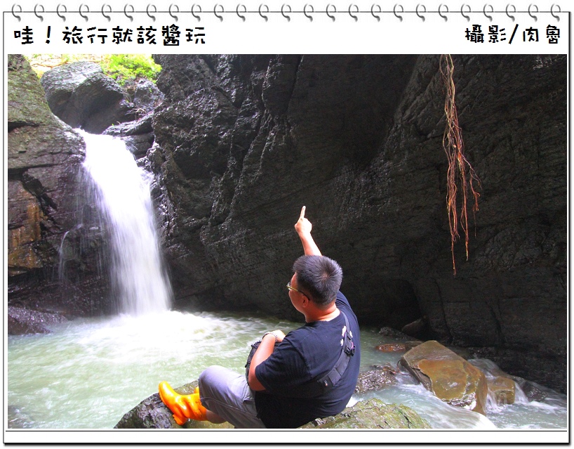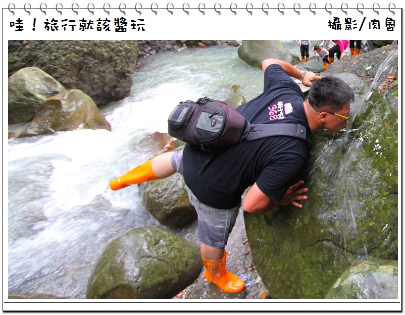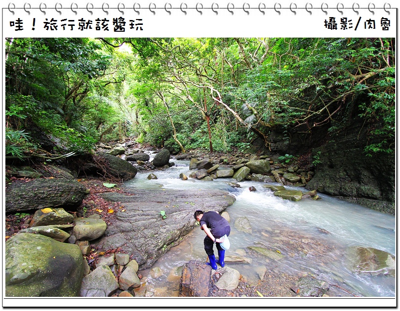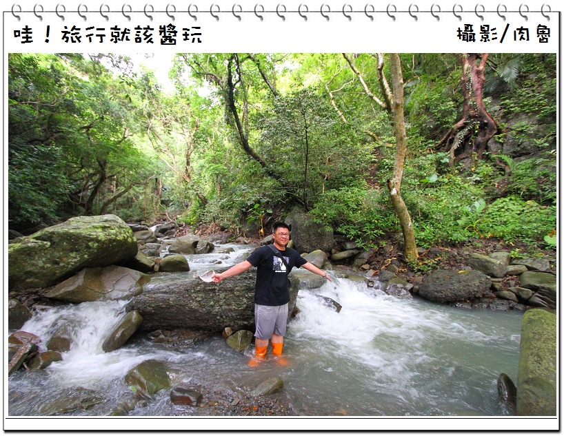 ▲我也樂於在欖仁溪谷中跳躍,真的超開心的呢,雖然前一晚又下起了大雨,但是慶幸老天給了一個好天氣,讓我們可以勇闖美麗島國度,深入叢林裡探險欖仁溪!