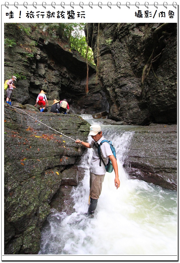 ▲俗話說上山容易下山難,回程時更必須確保安全,緊抓著繩子一步一步,三點不動一點動的原則,很輕易就可離開啦。