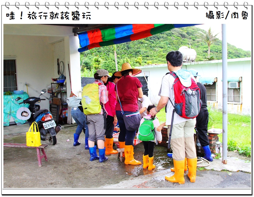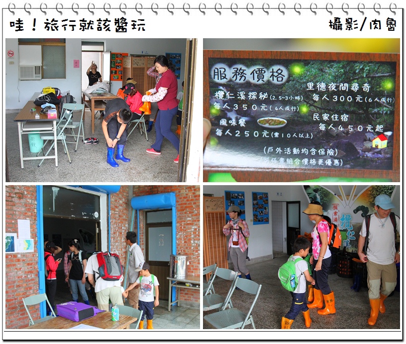 ▲欖仁溪的探秘行程也必須於里德社區活動中心集合,依舊要換上夜觀行程一樣的雨鞋,主要也是為了止滑與溯溪功用,這趟旅程就多了好多人呢,幾乎都是家庭帶著小孩前來,大家內心也都是雀躍不已,期待著…想要玩水的兒時調皮記憶。