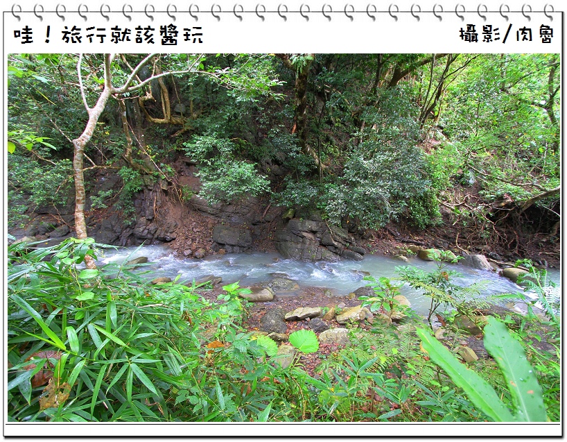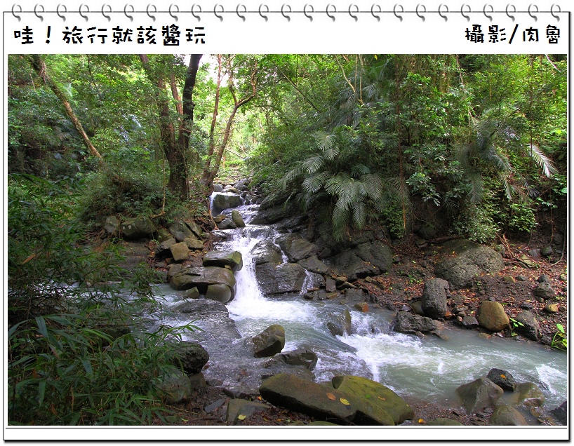 ▲可別誤會可別看到黑影就開槍,這不是欖仁溪瀑布喔,這是支流匯集之處,我想如果不是前一晚下起了磅礡大雨,溪流應該會更加清澈透明。