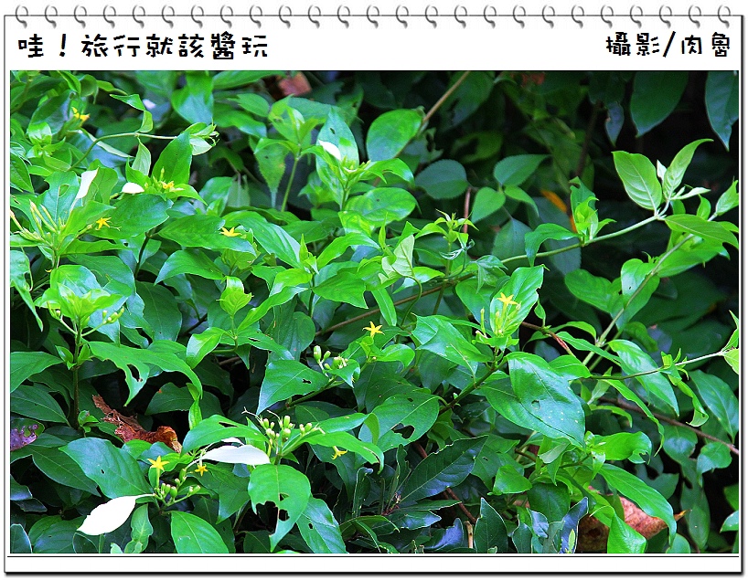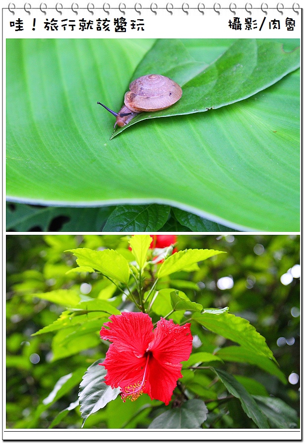 ▲代表熱情如火的扶桑花,一整片翠綠自然風貌任意取用,而來到欖仁溪更千萬別錯過要防蚊喔,戴上袖套或者噴防蚊液,都會讓你更加舒適行走於山林小徑裡。