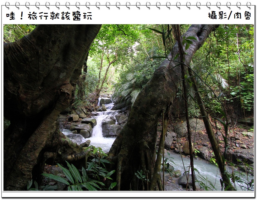 ▲繼續挺進欖仁溪瀑布,像極了勇闖神秘雨林,也幻想起電影情節:『遠方突然出現了食人族,一群人開始落荒而逃!』,我的旅行異想症狀真的太瘋狂了!