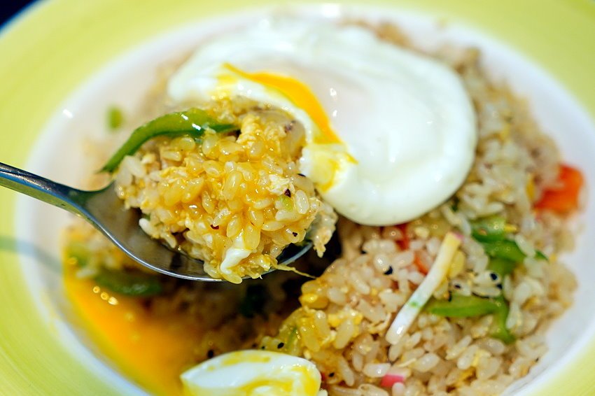 ▼將炒飯沾附濃郁的蛋黃一起享用,吃起來更多了股滑順蛋香,整體香氣更提升不少,營養也兼顧到啦!