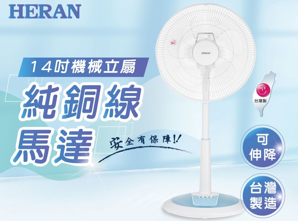 經濟部工業局自 99 年起推動台灣製 MIT 微笑產品驗證制度,驗證內容包括台灣製原產地認定及產品品質驗證,經第三方驗證單位驗證通過之產品,才能授予「MIT 微笑標章」!而這次要介紹的 HERAN 禾聯 HAF-14SH510 14 吋機械立扇,就是台灣製 MIT 微笑標章認證的產品之一,除了品質優異、安全無虞外,採用純銅線馬達的它還有體積小、散熱快、能耗小的優點,搭配冷氣一起使用不只冷房效果好,還更加節能。