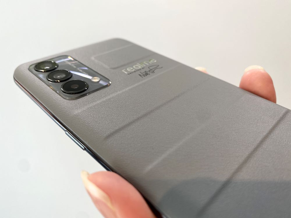 在外型上 realme GT 大師版行李箱款外觀上選用低飽和灰和業界首款立體素皮材質,逼真還原旅行箱波紋設計,實機的觸感比影片上來的更滑順,但握感也因為背後的條紋設計來的更好握。