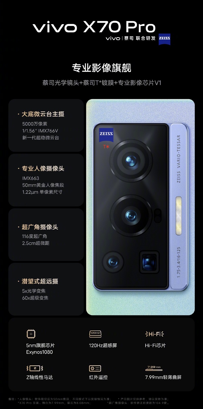 X70 與 X70 Pro 中國版是使用三星的 Exynos 1080 處理器,不過國際版則為聯發科天璣 1200 處理器,而且兩款也都會有微雲台技術。
