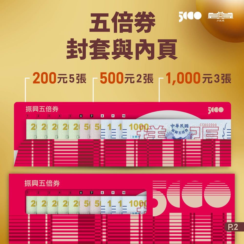 Q:五倍券實體券面額有哪些?