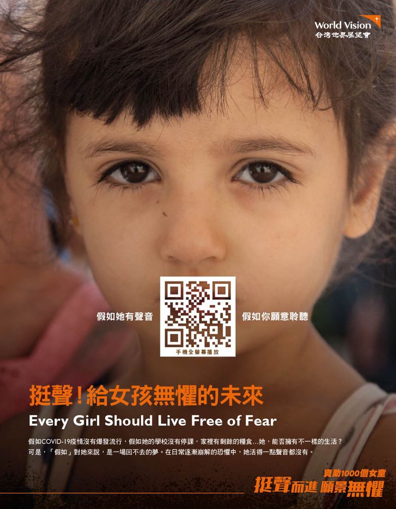  瞭解「資助1000個女童 挺聲而進 願景無懼」,請至台灣世界展望會網站活動首頁連結:https://bit.ly/3h2zvby