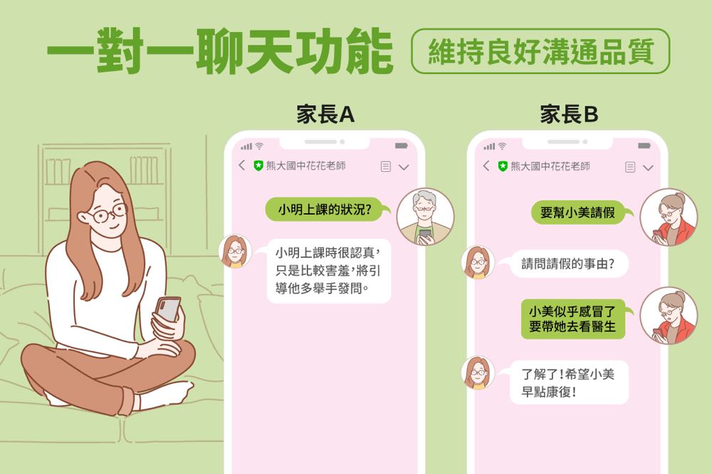 帳號區隔,減輕查找與回覆訊息的負擔,讓親師溝通更有效率。