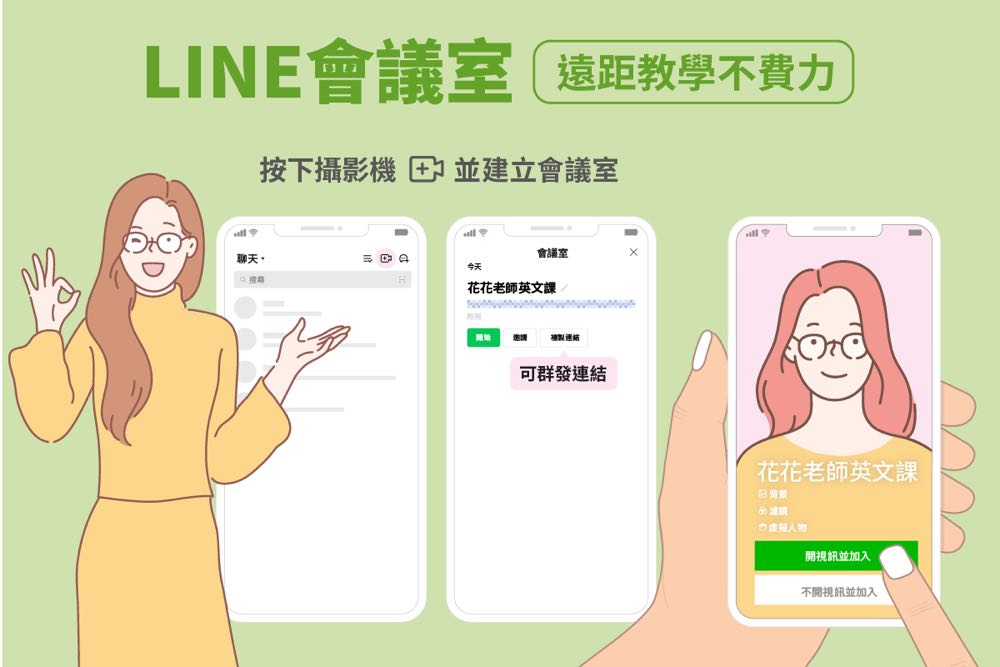 除了在學校期間的聯繫外,LINE 官方帳號更是遠距教學的強力後盾,可結合 LINE 會議室功能,以群發訊息提供會議連結,學生一鍵點開便可加入遠距課程,一體化的串流服務讓 LINE 成為疫情期間最佳助力,在學校滾動式因應防疫政策的現今顯得格外重要。