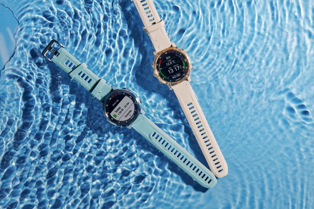 市場邁向第 4 年,Garmin 推出業界最輕巧「Descent Mk2S GPS 潛水電腦錶」,全機僅重 60g,43mm 錶徑搭配 1.2 吋陽光及水下清晰可讀的彩色螢幕 (MIP),整體尺寸體積輕量化,且不同於一般深色系潛水電腦錶,特別推出香檳金、礦石藍亮色系,在台建議售價為 NT$32,990元。