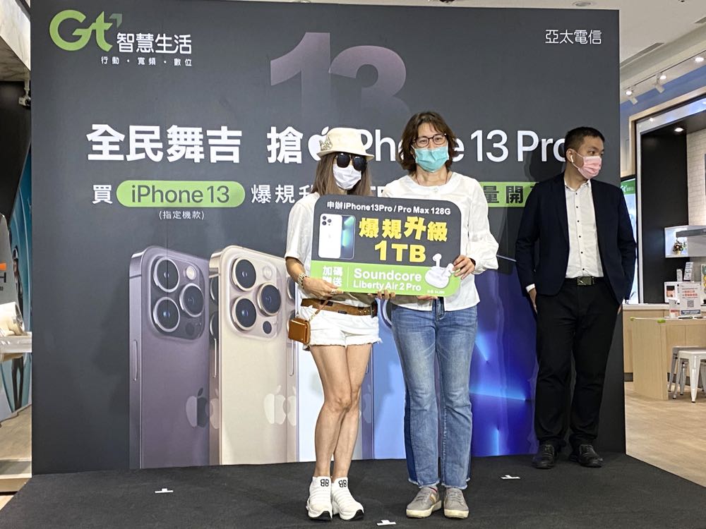 奪得頭香的神小姐,自上週四(16 日)約早上 11 點即開始排隊,就連中秋節四天連假都在排隊現場度過,亞太電信為感謝果粉支持,行銷中心副總經理鄧美慧宣布神小姐選購的 iPhone 13 Pro Max 機型,免費爆規直升 1TB 容量。首次參與 iPhone 首賣會的神小姐忍不住興奮表示,對於亞太電信的 5G 網路相當有信心,且只要用 128GB 的預算就能獲得1TB容量,便決心要提早卡位搶得超值的頭香優惠。