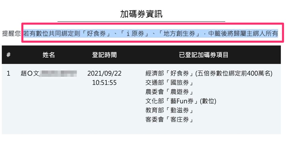 2. 加碼券的部分,「好食券」、「i 原券」與「地方創生券」中籤後將歸主綁人所有唷!