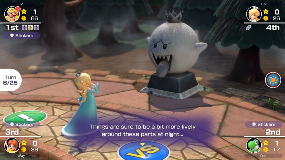 最後是似乎會有鬼怪出沒且帶著些許恐怖氣氛的「恐怖樂園」。特色是每兩回合就會變換一次晝夜,獲勝的關鍵在於是否能好好活用晝夜不同的裝置。