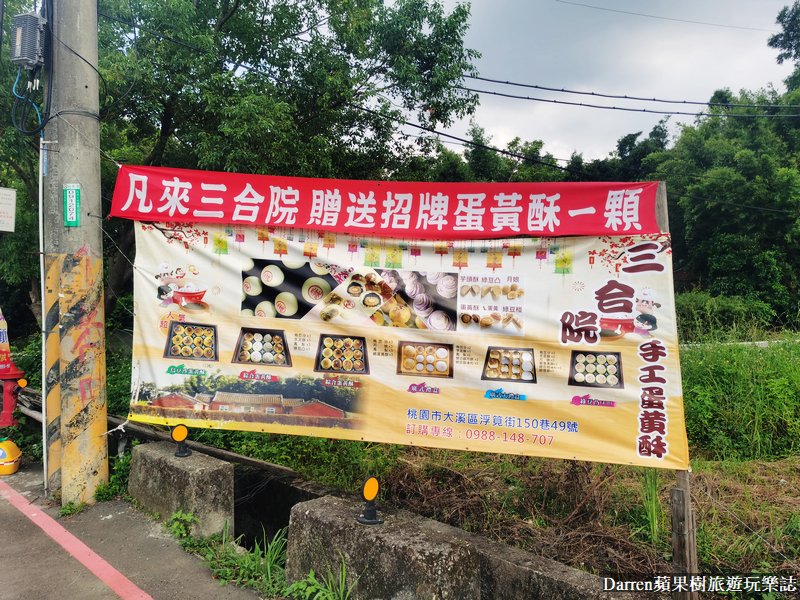三合院手工蛋黃酥桃園市大溪區浮筧街150巷,八德落羽松森林就在附近,在路口就有旗子指引前往方向,如果沒有旗子的話,完全不知道要進到小路內,也看不出來裡頭有賣蛋黃酥