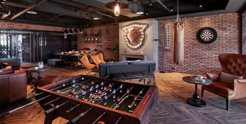 二樓是捷絲旅台南十鼓館交誼廳,裡面我覺得是有點美式復古的味道,規劃了手足球檯、桌遊、自助洗衣間及自動販賣機等設施可以使用,牆上一幅來自舊糖廠的「你的安全是靠你小心,不是依靠你的運氣」標語很有意思。