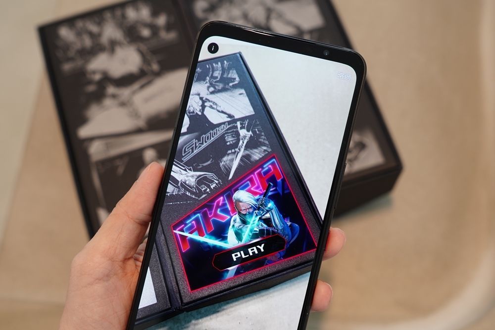官方從盒裝設計到手機本體提供很一致的電競風格而且處處充滿巧思,ROG Phone 5s Pro 和 ROG Phone 5 一樣皆採用六角型的盒裝設計,打開之後會先看到 AKIRA 漫畫,透過手機掃描之後就可以讓平面的靜態漫畫動起來,這樣 AR 的應用充滿了濃濃的電競味。