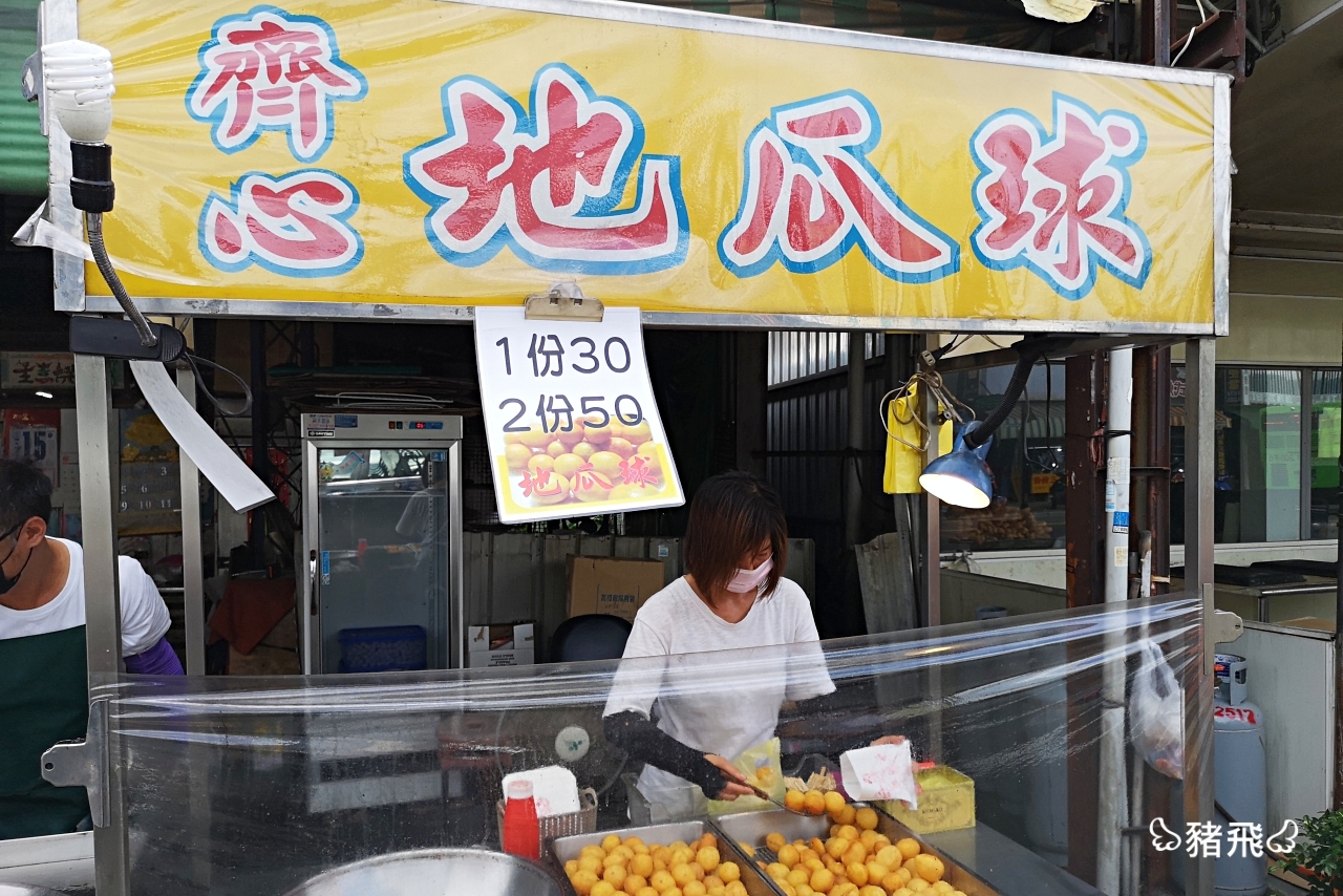「齊心地瓜球」其實是豬飛誤打誤撞買到的,某天跟豬飛哥約好要到霧峰的黃昏市場採買,下車後漢斯跟豬飛哥負責食材採購,我就負責到市場裡找好吃的。傳統市場裡總是會有一些隱藏版銅板美食,好吃的會讓人飛上天。齊心地瓜球大概就是那個讓我心情飛上天的下午茶點心。