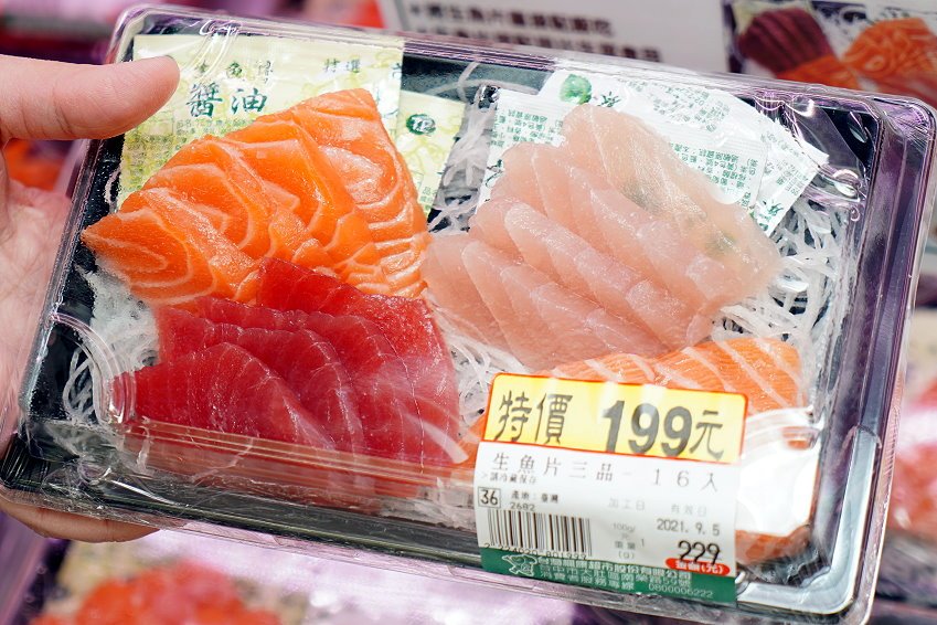 什麼~~現在不用去漁港就能買到新鮮大盒又便宜的生魚片,就在台中人最親切的「楓康超市」!!話說我以前念書的時候也很常去逛楓康超市,因為走道寬敞、商品眾多,價位也算是很實惠,尤其熟食區更是方便又好吃;這次我們的目標就是來搶購週末限定的限量生魚片,每盒16片只賣199元,不管是鮭魚生魚片或是綜合生魚片都是統一價,CP值超高~~而且柔嫩鮮甜又好吃,像我們一樣是鮭魚控的朋友一定要趕快吃起來!