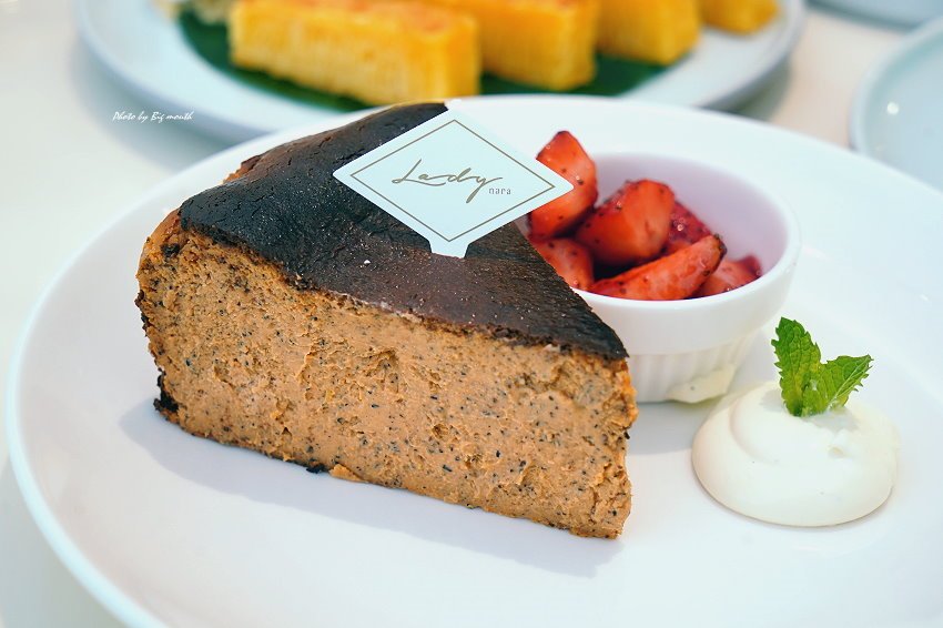▼泰茶巴斯克蛋糕,採用手標紅茶加入巴斯克蛋糕裡頭,一旁附上新鮮草莓、鮮奶油,搭配享用更加清爽解膩!一口咬下,不僅能吃到濃醇的茶香,紮實綿密的口感加上焦糖、起士香氣,吃起來也挺合拍~~也是當天大口最愛的一款蛋糕!