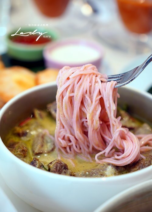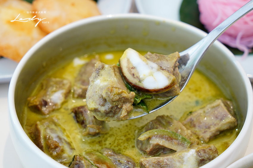 ▼綠咖哩吃起來香醇濃郁,咖哩粉是採用泰國當地的咖哩香料,帶點小辣的後勁,搭配柔嫩有嚼感的牛腩很是對味!