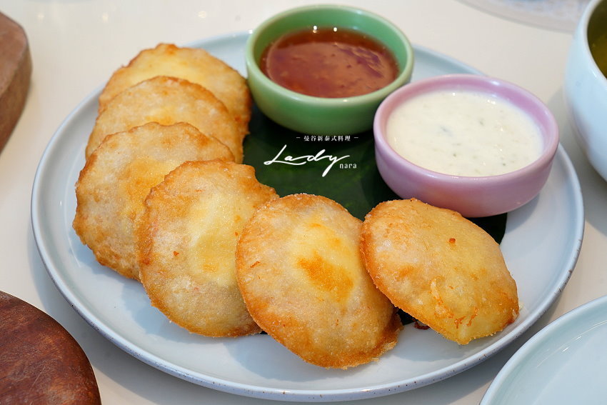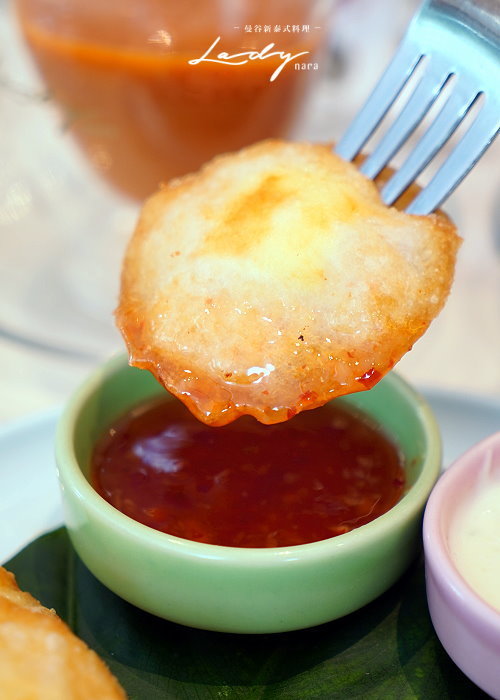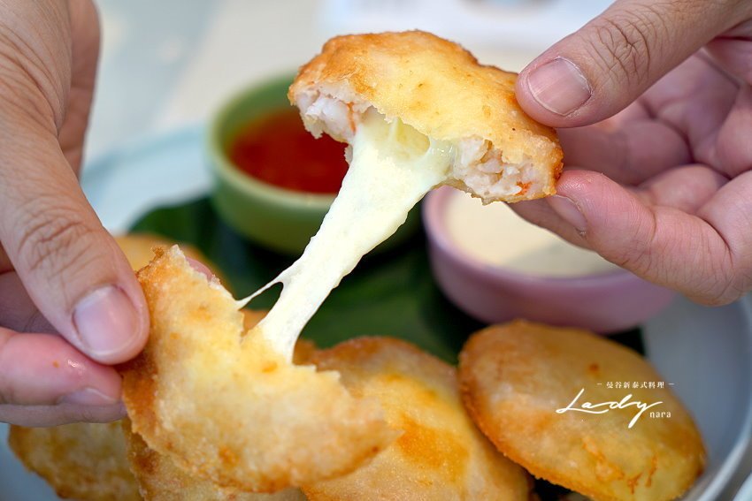▼起士炸蝦餅,一旁搭配泰式酸辣醬、凱薩醬,讓大家自由搭配享用!