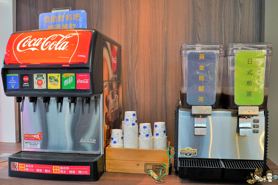 自助式飲料吧,無糖飲料、汽水機,內用就可以免費續飲