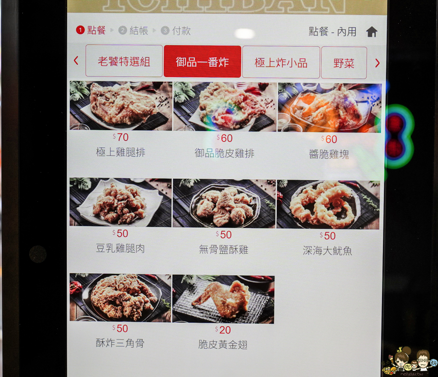 炸物美食挑選完,可點選內用或外帶