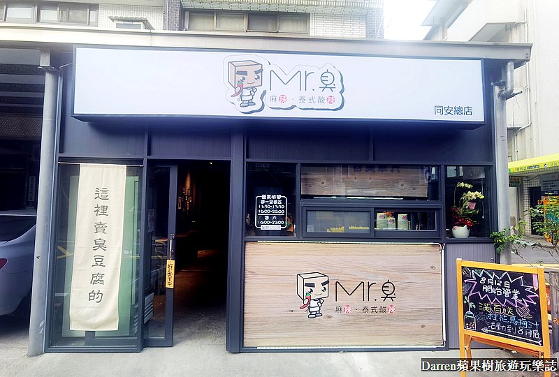 MR.臭麻辣臭豆腐就在同安街上,鄰近同安親子公園,開車來只能臨停或找路邊停車位,騎車來就比較方便,外觀看不太出來是賣臭豆腐,旁邊還掛著布條寫著這裡賣臭豆腐的