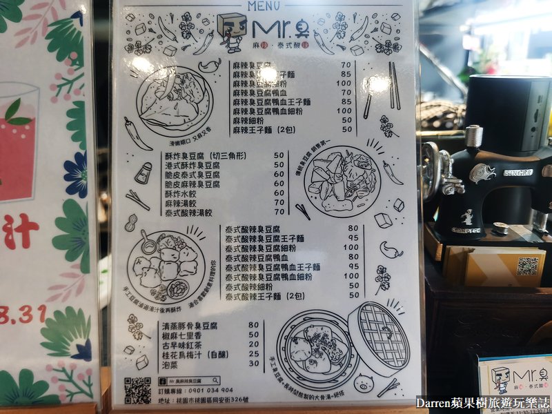 MR.臭麻辣臭豆腐菜單MENU,有麻辣臭豆腐、酥炸臭豆腐、泰式酸辣臭豆腐、清蒸豚骨臭豆腐等等品項非常多,還有賣麻辣滷味以及古早味飲料