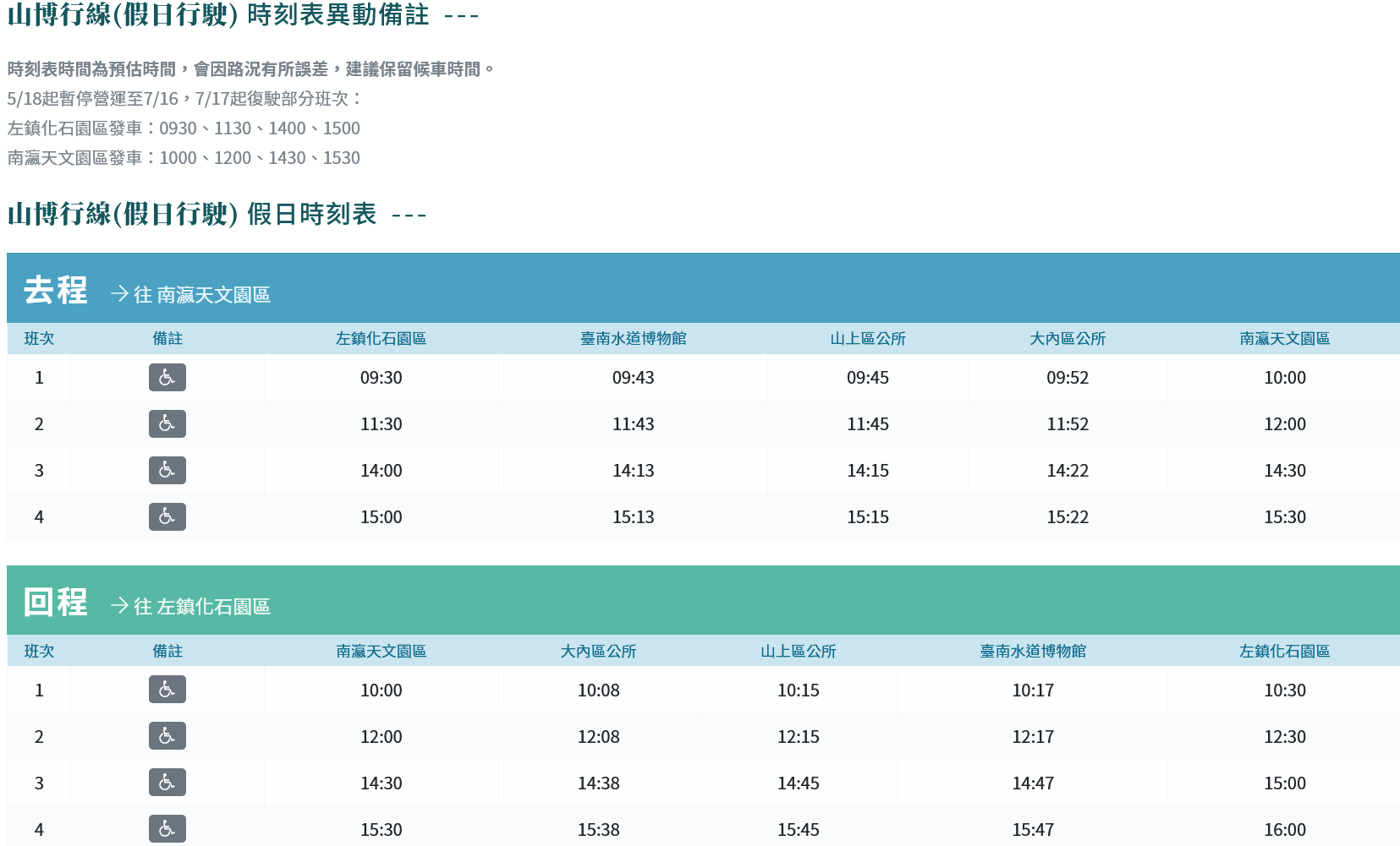 - 台灣好行山博行線現金票價時刻表