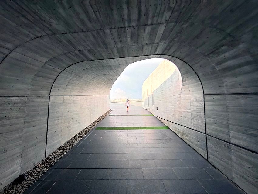 ▼清水模的通道還可以走到屋頂上欣賞美景~~微斜的緩坡也相當好走!