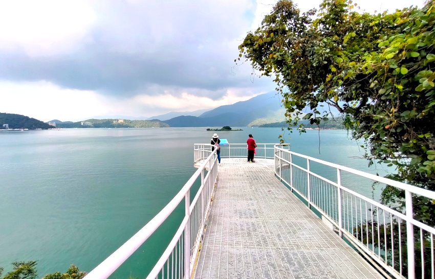 ▼快到向山遊客中心前還有一個「向山懸臂式天空觀景台」,也是遊人必拍的景點之一,這裡可以360度欣賞寬敞的湖景,加上迷濛漸層的山景,整個就好像山水畫一般的夢幻啊!