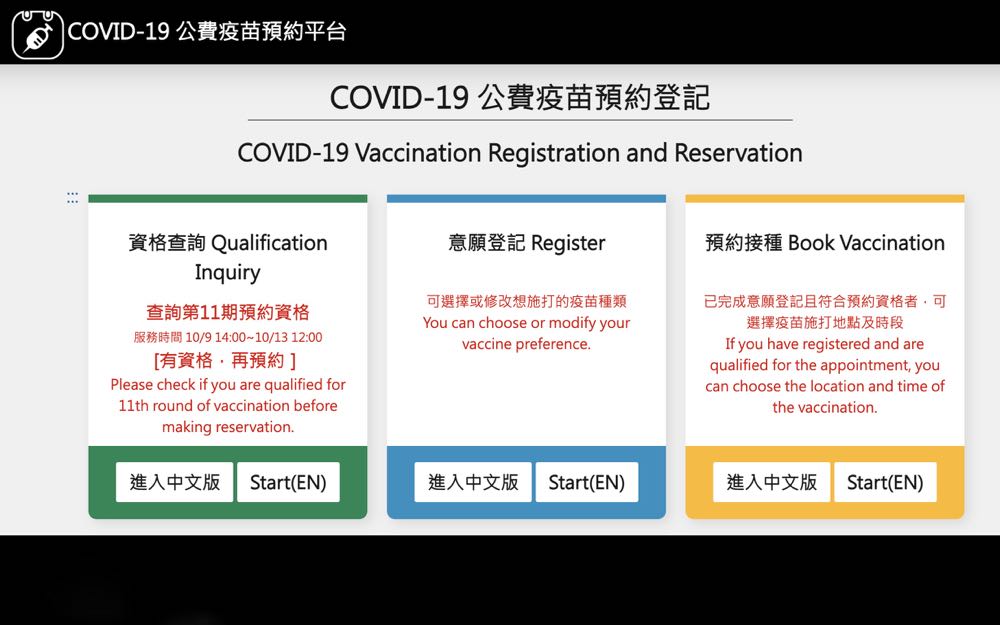 COVID-19 公費疫苗預約資格查詢:https://1922.gov.tw/