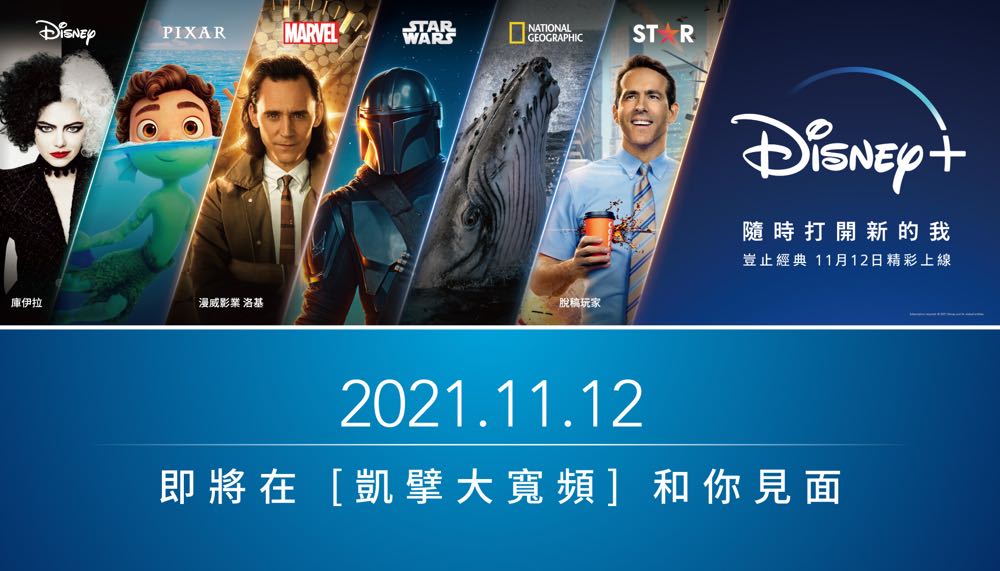Disney+ 線上串流影音服務將在 11 月 12 日於 A1 Box 全新上架,即日起至 11 月 11 日,只要至凱擘大寬頻的 Disney+ 預約登記網頁留下基本資料,並於服務上線後完成申裝,就能把迪士尼系列官方精美好禮帶回家!