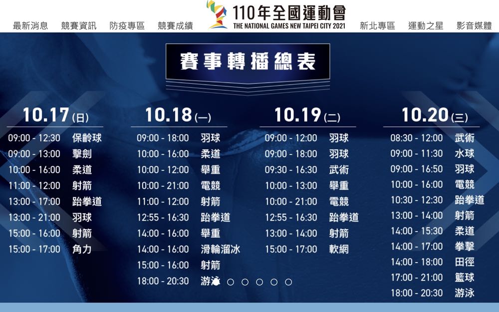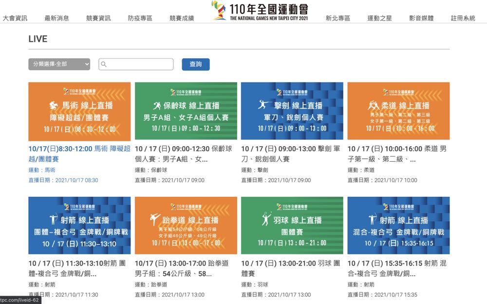110 年全國運動會在 16 日轟轟烈烈開幕,此次受到疫情影響不開放民眾觀賽,除了全運會官方網站有提供直播外,Yahoo 奇摩、MOESports、動滋 Sports、智林體育台等頻道,也都會進行網路賽事直播。MOD/IPTV、手機網路 OTT 的部分,則有愛爾達體育 1、2 台和智林體育台協助進行轉播,有線電視則是交給緯來體育台,智林體育台也提供全台部分縣市在電視上收看。