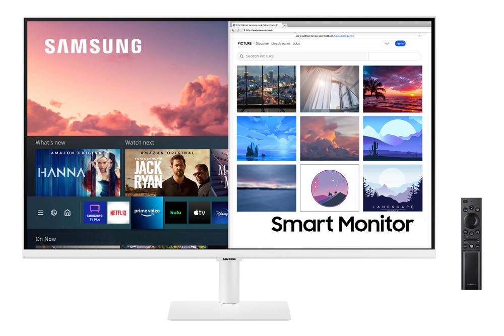 三星智慧聯網螢幕 M7 結合遠端辦公、文書處理及娛樂功能於一身,用戶可透過遠端存取功能連結公司或學校電腦,並使用內建 Wi-Fi 功能連結網路,開啟 Office 365 快速檢視及編輯文件,輕鬆提升工作效率。下班後,用戶能透過內建的Smart Hub,輕鬆觀看 Netflix、YouTube 與 HBO 等 OTT 媒體服務,搭配內建 10W(5Wx2)立體聲喇叭,不論是追劇或遊戲,都能享受如臨現場的視聽盛宴。三星智慧聯網螢幕 M7 亦具備完整連接能力,行動裝置用戶能透過內建感應連結(Tap View)、鏡像分享及 Apple AirPlay 2 將行動裝置畫面投射至螢幕,多螢串聯暢通無阻,打造輕鬆便利的智慧生活。