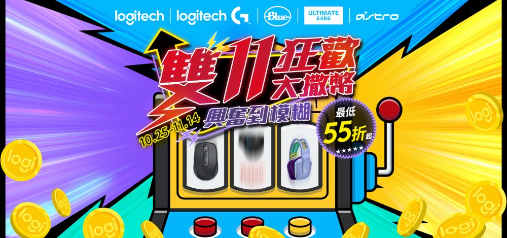 Logitech 雙 11 超強折扣即日起到 11 月 14 日,在 Logitech 官方旗艦店、PChome、momo、Shopee、Yahoo、燦坤、順發、三井、良興、原價屋等全台網路與實體通路全面下殺中。