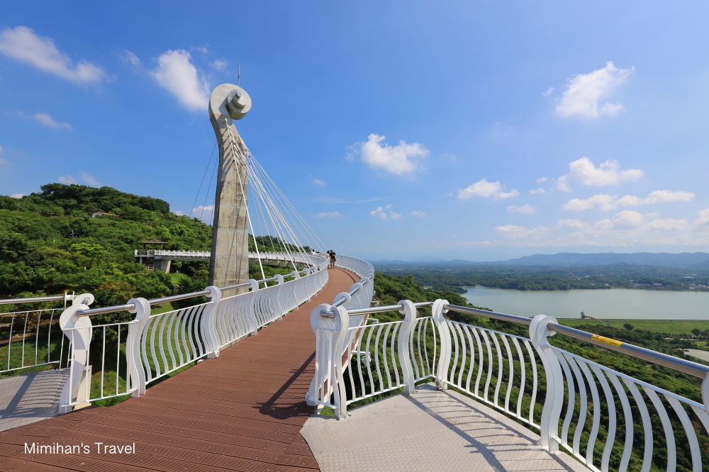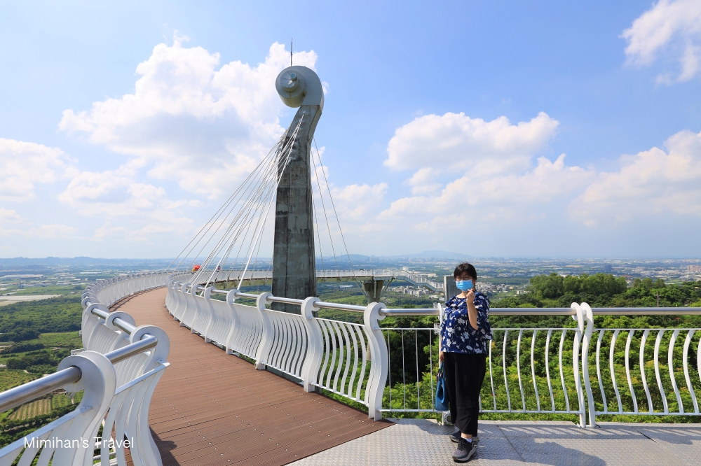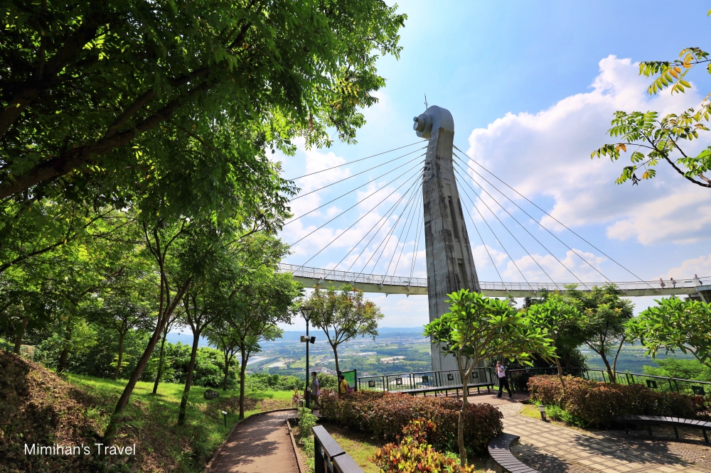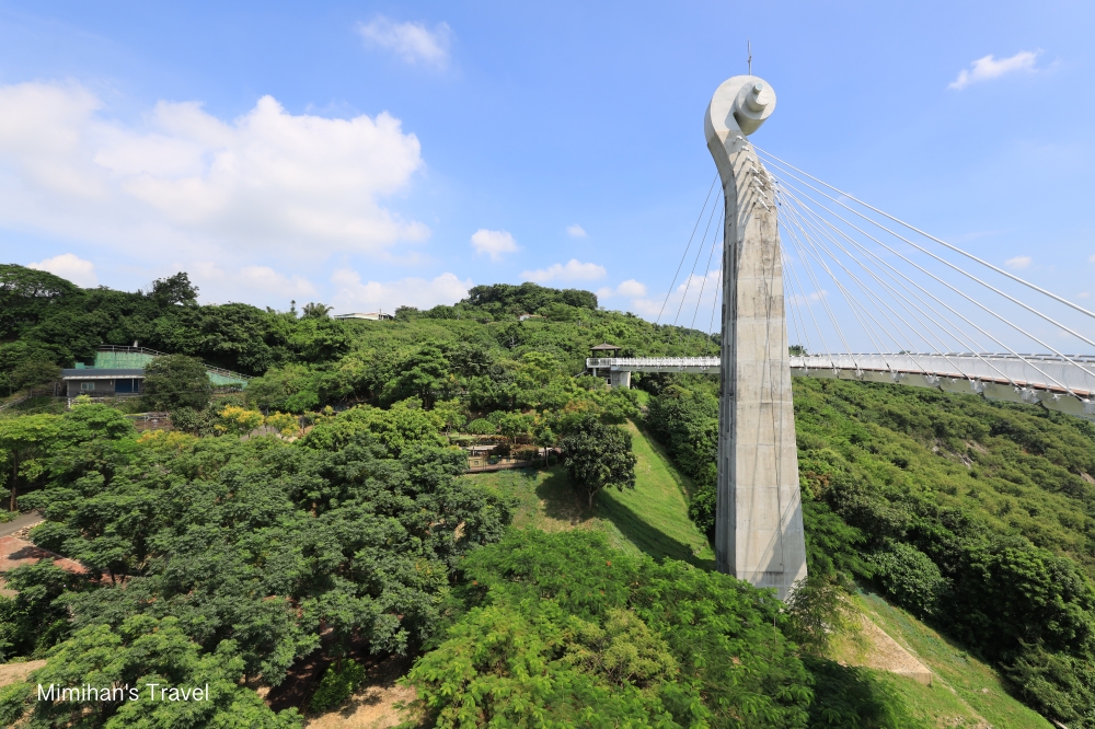 官網說崗山之眼是以音樂為設計概念,主塔橋像是小提琴,現場看還真有那點感覺,但其實更吸引我的是那片寬闊的視野,阿公店水庫、阿公店溪周圍景色盡收眼底,還可以看到更遠處的半屏山、壽山、臺灣海峽以及高雄地標八五大樓唷~