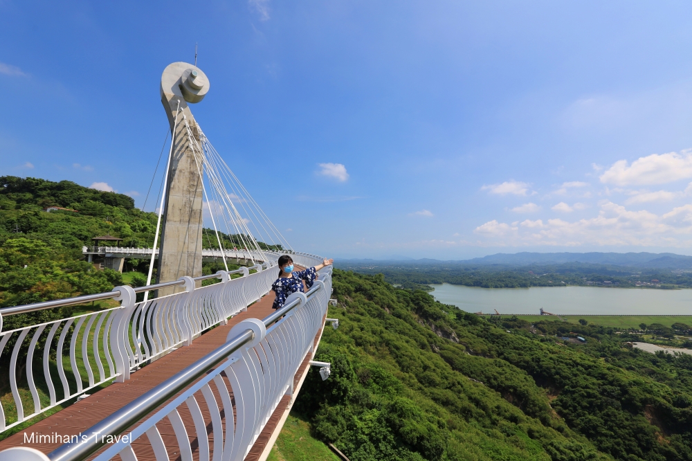 視線真的是捨不得離開這片廣闊的綠意,走兩步就想拍張照。其實整條崗山之眼天空廊道不長,只有約88公尺,大概安排15~20分鐘走拍就差不多足夠,另外也提醒天空廊道現場沒有遮蔽,大熱天記得做好防曬,高雄的太陽不是跟你開玩笑的。