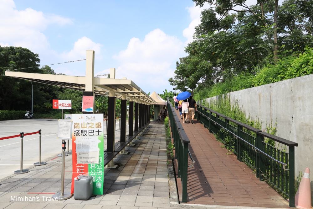 提醒大家,如果是自己開車來岡山之眼要停在阿公店森林公園,務必注意接駁車位置並不在阿公店森林公園停車場,而是需再往前約100公尺左右才是正確的位置(如下圖),在Google地圖看就是菜寮路&水庫路的交叉口。