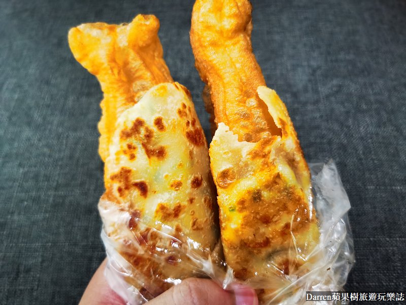油條蛋餅就是油條外面包著蛋餅,外面常見都是燒餅油條,油條蛋餅拿起來很大一份,老闆娘直接對半切,我很想說可以幫我切3等份,油條咬下去卡滋非常酥脆,外面的蛋餅表面恰恰,合在一起吃讓油條多了蛋香,如果是蛋餅控的朋友,可以來試試這家國泰早點,蛋餅CP值很高口感不錯