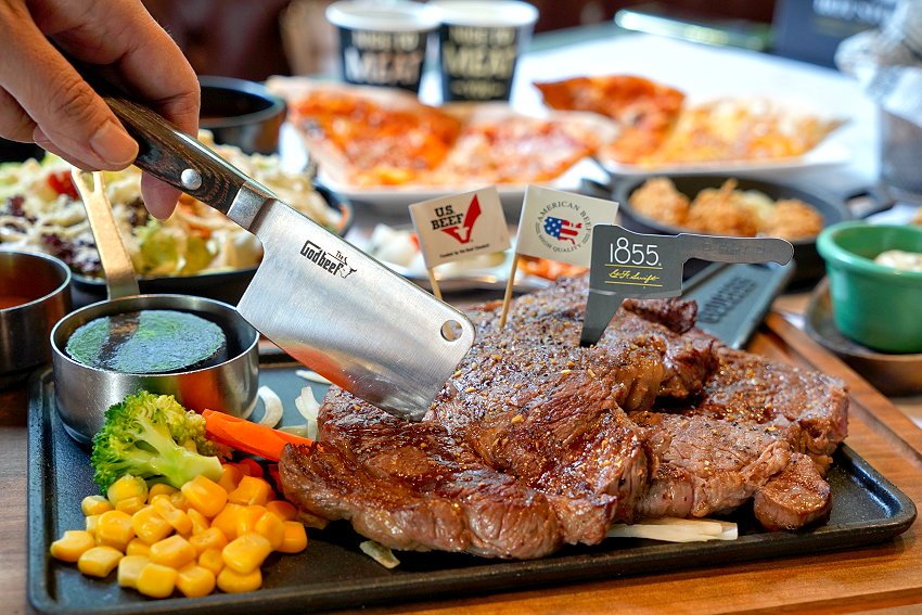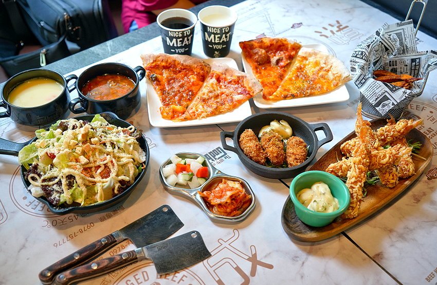 【台中美食】很牛炭燒牛排.溼式熟成、430度直火炭烤!披薩自助吧吃到飽!