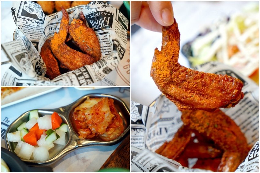 ▼水牛城辣雞翅,微酥甘醇的外皮搭配細嫩的肉質,加上辣粉的辛香氣息,啃食起來很爽快~~辣度也不會太高!他們家連小菜都做得不錯,不管是韓式泡菜或是醃蘿蔔都有一定水準,吃起來開胃又爽脆!