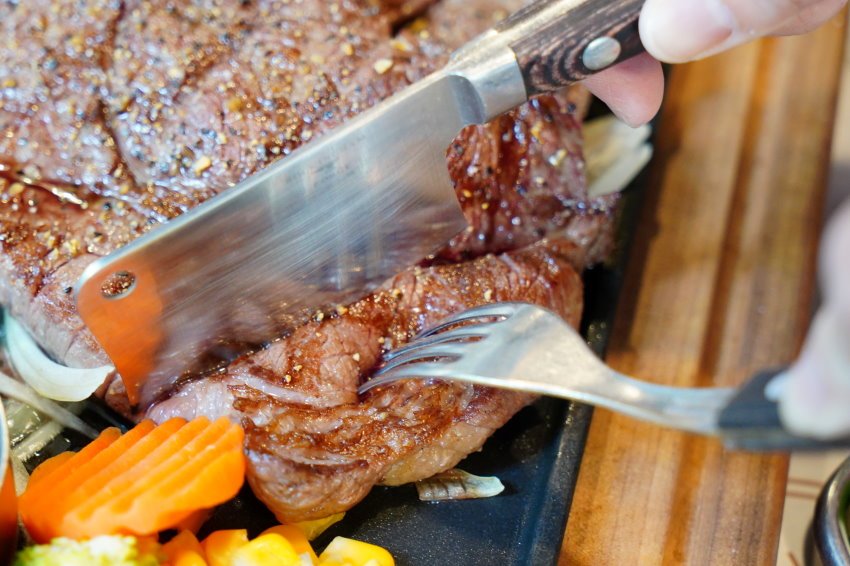 ▼安格斯肋眼心沙朗約3~5分熟,切起來也不會過韌不好切;肋眼心採用430度直火炭烤,吃起來不僅有迷人炭香,搭配牛肉香甜,很適合喜愛大口吃肉的朋友享用!