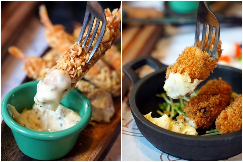 ▼炸蝦單吃就有味道,搭配醬料更加甜美滑順;廣島炸牡蠣吃起來外酥內嫩,還帶有微爆漿的湯汁,鮮美又好吃!