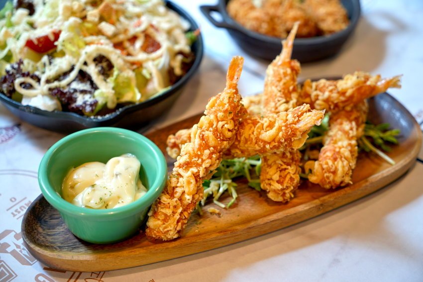▼黃金炸蝦,一旁搭配的是塔塔醬,吃起來外皮酥脆、蝦肉Q彈鮮美,就連冷掉也還是很脆口,不會過於油膩!