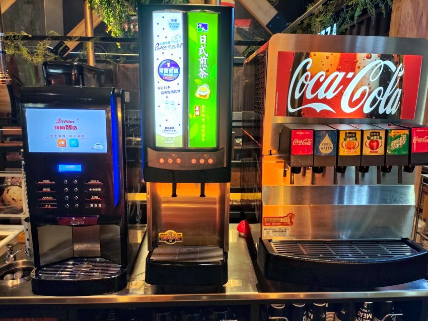 ▼飲料區,有氣泡飲品、果汁、茶類及熱咖啡,選擇還不少!